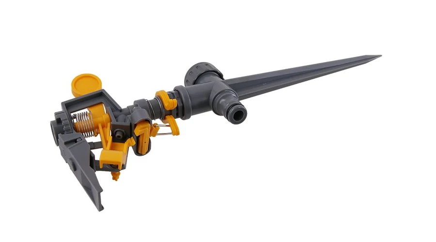 Tüskés, kétirányú impulzusos sprinkler gyorscsatlakozós tömlőcsatlakozással. Min. 70 kPa és max.