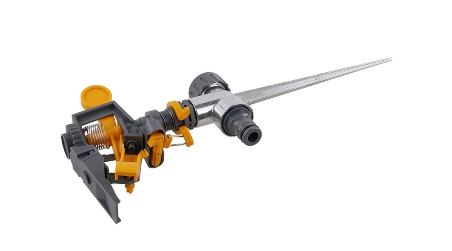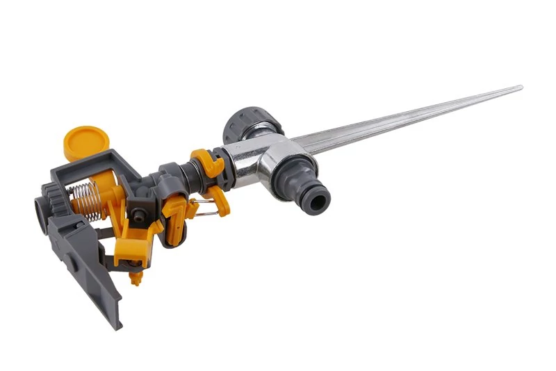 Hegyes kétirányú impulzusos sprinkler gyorscsatlakozós tömlőcsatlakozással, műanyag/fém. Min. 70 kPa és max.