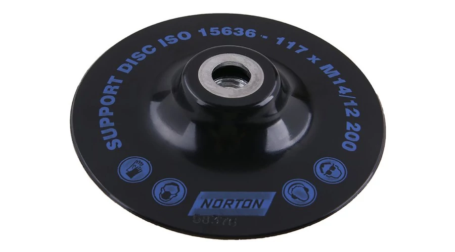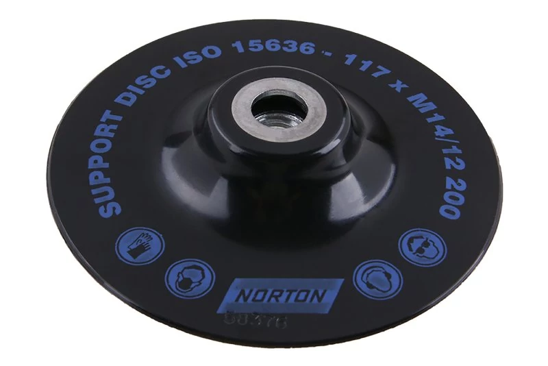 Fiber tárcsa meghajtó, rugalmas műanyag tartólemez, M14, felhasználás: 125 mm átmérőjű száltárcsák tartásához, rögzítés módja: csavaron keresztül.