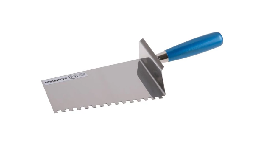 Fogazott kanál rozsdamentes acél éllel 180 mm, fa nyéllel. Ez a kőműves kanál őrölt minőségű rozsdamentes acélból készült, nyele fából készült, lakkozott és szorosan kapcsolódik a kanálhoz. A kanalat főként habarcs pórusbetonra történő lerakására használják.