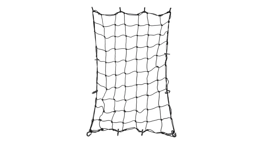 Rugalmas rögzítőháló kampókkal 120 x 80 cm, alkalmas tárgyak rögzítésére az autó csomagtartójában.