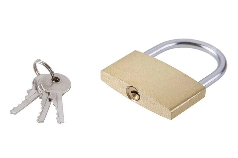 50 mm-es sárgaréz zártest Sárgaréz betét Kulcsok: 3 Súly: 95 g Edzett acél ív a jobb vágásállóság érdekében.