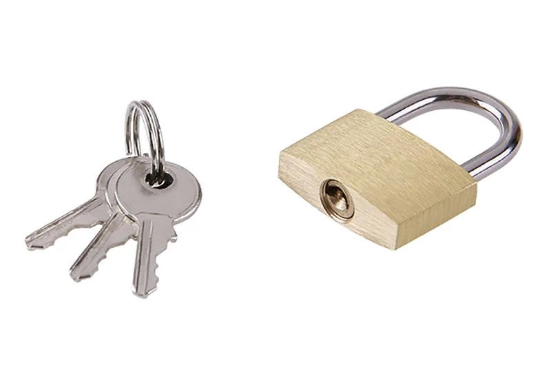 25 mm-es sárgaréz zártest Sárgaréz betét Kulcsok: 3 Súly: 25 g Edzett acél ív a jobb vágásállóság érdekében.