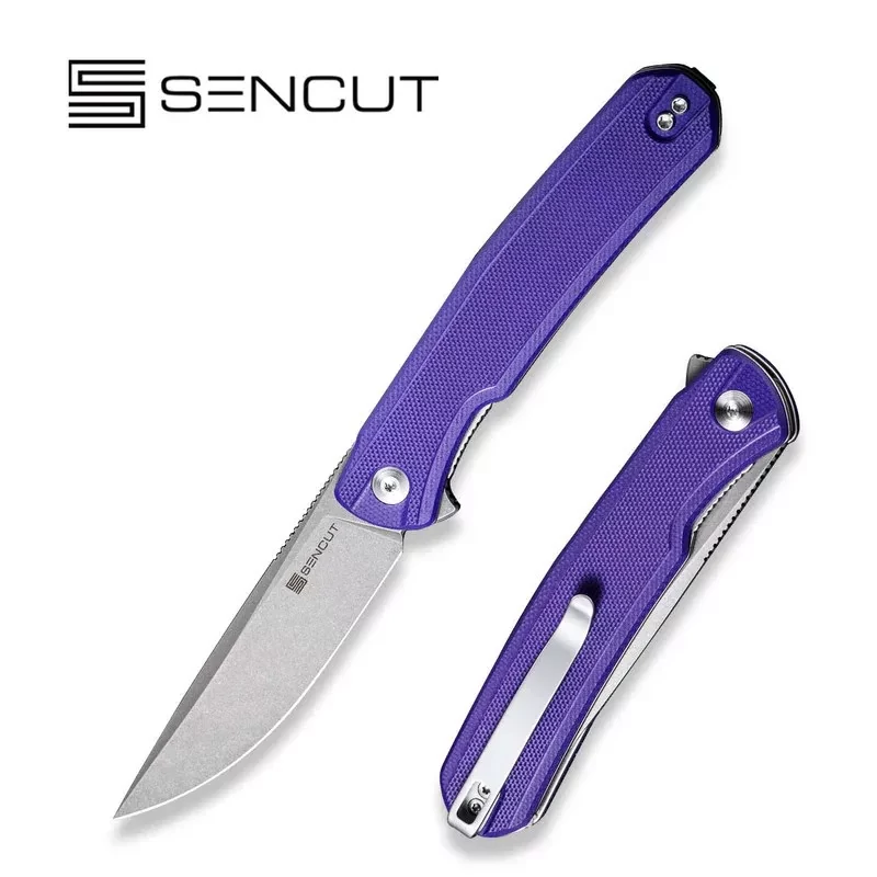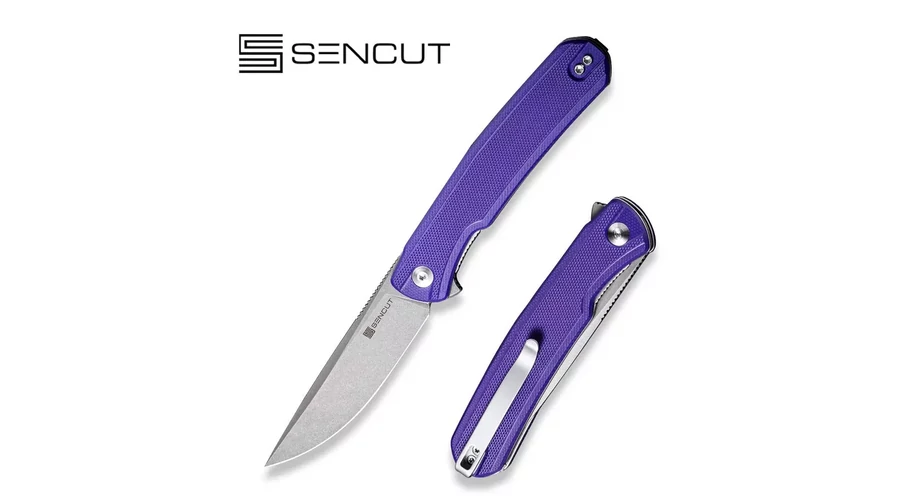 SENCUT Scitus zsebkés D2 pengével, lila G-10 markolattal.