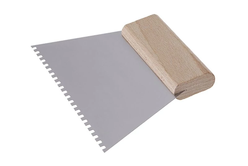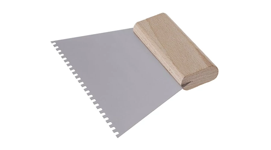 Acél simító 180 mm-es fogú e4 fa nyéllel. Simító festési, kőműves és padlóburkolati munkákhoz. Önterülő keverékek, ragasztók, habarcsok stb. felhordására szolgál.