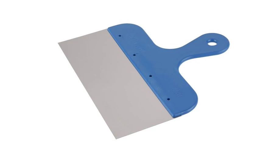 Spatula homlokzat rozsdamentes acél 250 mm műanyag nyéllel. Használható vakolásnál, festésnél, festésnél, karosszériajavításnál vagy művészi alkotásnál, stb. Alkalmas vakolat vagy egyéb tömítőanyag felhordására vagy régi festékek és bevonatok eltávolítására.