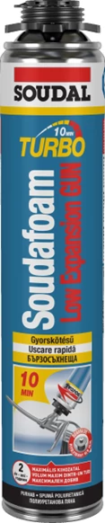 Soudafoam Low Expansion Gun Turbo egykomponensű, enyhén dagadó, azonnal használatra kész poliuretán hab, amely HCFC- és CFC-mentes hajtóanyagokat tartalmaz, melyek nem károsak az ózonrétegre, és a palack menetes kupakkal rendelkezik, így pisztolyra is fel lehet használni. A Soudafoam Low Expansion Gun Turbo speciálisan kidolgozott formulát tartalmaz, amely nagyon gyors kötést és magasabb kiadósságot eredményez a szokásos habokhoz képest. A Duravalve miatt az optimális kiadósság megmarad az egész szavatossági idő alatt, még akkor is, ha fektetve tárolják vagy szállítják.