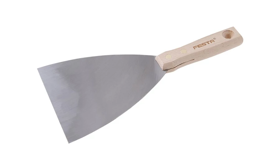 Festő simító (spatula) köszörült acél pengével és fa szegecselt nyéllel. A festő simítót lyukak kitöltésére, a felesleges anyag lekaparására stb. használják. Penge szélesség: 140 mm