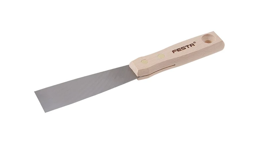Festő simító (spatula) köszörült acél pengével és fa szegecselt nyéllel. A festősimító lyukak kitöltésére, felesleges anyag lekaparására stb. használatos. Penge szélesség: 40mm