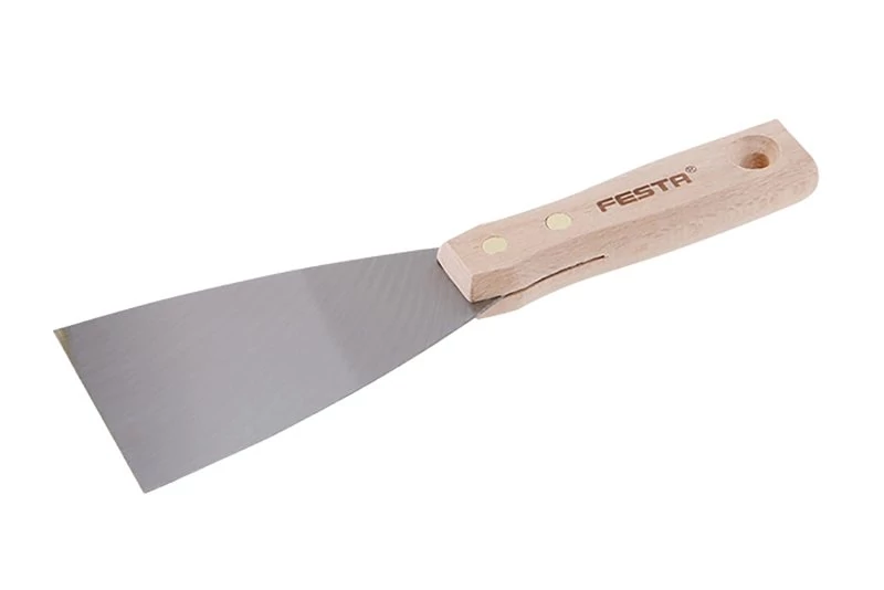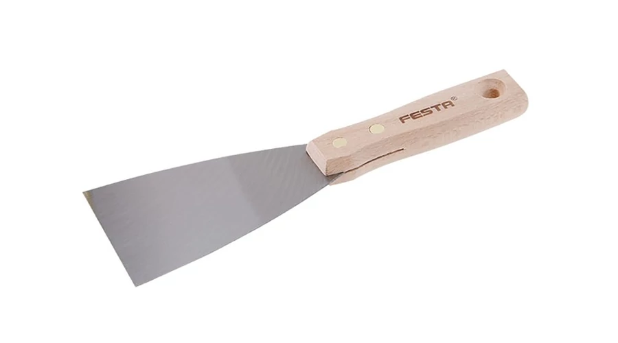 Festő simító (spatula) köszörült acél pengével és fa szegecselt nyéllel. A festősimító lyukak kitöltésére, felesleges anyag lekaparására stb. használható. Penge szélesség: 70mm
