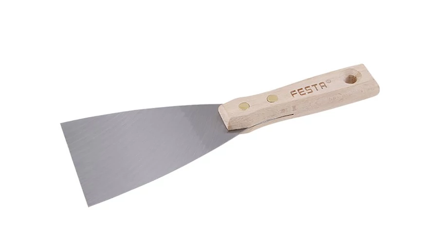 Festő simító (spatula) köszörült acél pengével és fa szegecselt nyéllel. A festő simítót lyukak kitöltésére, felesleges anyag lekaparására stb. használják. Penge szélesség: 90mm