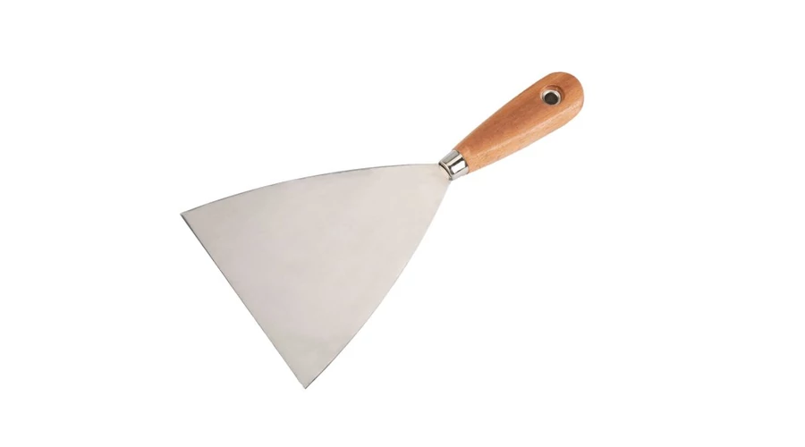 FESTA rozsdamentes acél ék spatula 140 mm fa nyéllel. Használható vakolásnál, festésnél, festésnél, karosszériajavításnál vagy művészi alkotásnál, stb. Alkalmas vakolat vagy egyéb tömítőanyag felhordására vagy régi festékek és bevonatok eltávolítására.