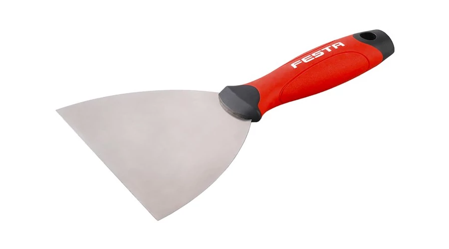 Rozsdamentes acél spatula FESTA 120 mm, ergonomikusan kialakított gumi fogantyúval. Használható vakolásnál, festésnél, festésnél, karosszériajavításnál vagy művészi alkotásnál, stb. Alkalmas vakolat vagy egyéb tömítőanyag felhordására vagy régi festékek és bevonatok eltávolítására.