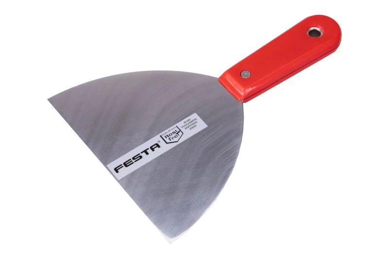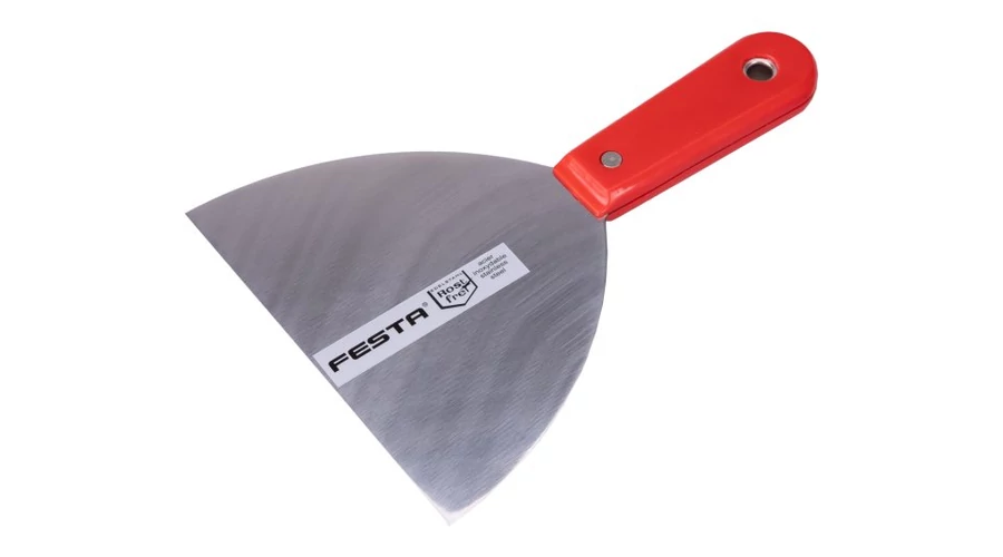Rozsdamentes acél spatula FESTA 150 mm műanyag nyéllel. Használható vakolásnál, festésnél, festésnél, karosszériajavításnál vagy művészi alkotásnál, stb. Alkalmas vakolat vagy egyéb tömítőanyag felhordására vagy régi festékek és bevonatok eltávolítására.