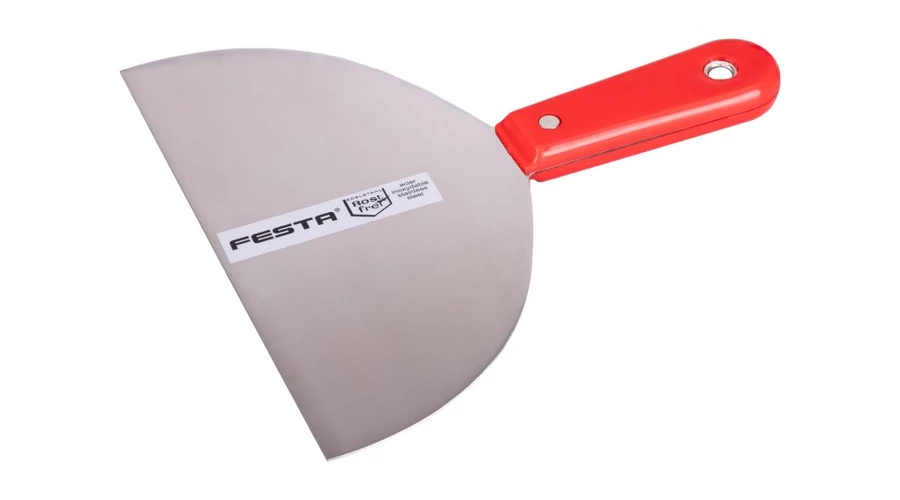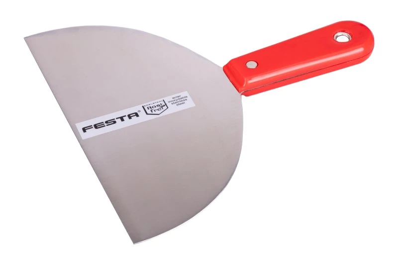 Rozsdamentes acél spatula FESTA 200 mm műanyag nyéllel. Használható vakolásnál, festésnél, festésnél, karosszériajavításnál vagy művészi alkotásnál, stb. Alkalmas vakolat vagy egyéb tömítőanyag felhordására vagy régi festékek és bevonatok eltávolítására.