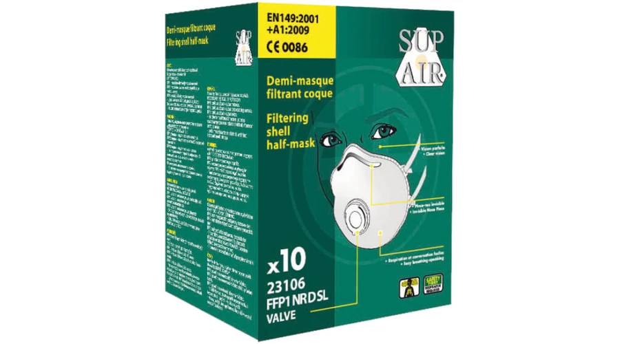 - inert porok, valamint nem veszélyes szilárd és folyékony részecskék ellen (pl. cement, cellulóz, porcelán-kaolin, gumi, vasreszelék, szénpor, növényi olaj, liszt) - D jelölése igazolja, hogy a részecskeszűrő megfelelt a dolomit teszt eredményének, kis légzési ellenállás megtartása mellett garantálva az eltömődés nélküli, hosszabb idejű használhatóságot - kónusz forma, alumínium orrcsipesz, kényelmes felfekvést segítő szivacscsík; nem allergén - külső pp-SMS, belső poliészter réteg, elektrosztatikus polipropilén közszűrő - felhelyezés két rugalmas gumipánttal - névleges védelmi tényező: 4 EH EU szabvány: EN149:2001 +A1:2009