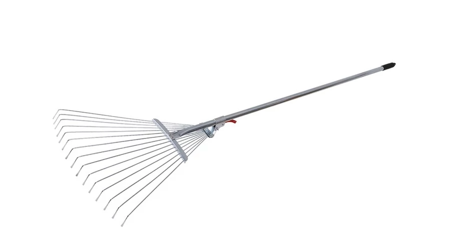 Svéd gereblye fém klipsszel - biztonsági berendezés, állítható pengetávolság, felhasználás: levelek, fű gereblyézésére.