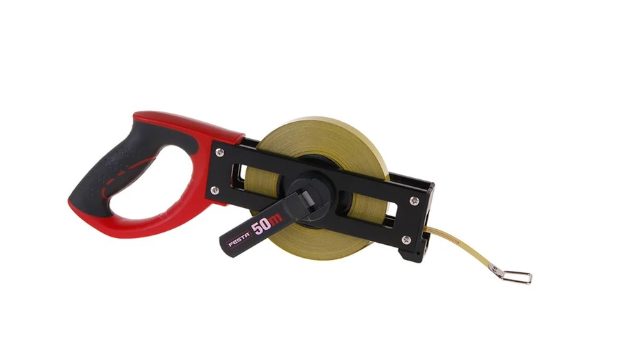 Minőségi és precíz acélszalag, edzett szalag fűzőlyukkal, nyitott kivitel - fém vezető ABS műanyagból készült ergonomikus fogantyúval, EEC tanúsítvánnyal - kalibrálásra alkalmas, lehajtható tekercselő fogantyú.