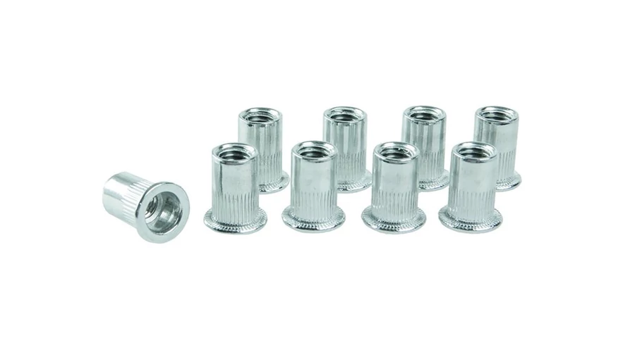 Alumínium szegecsanyák M8 metrikus menettel, hossz 16,5 mm, mennyiség a csomagban 20 db, recézett gallér a csatlakozás nagyobb szilárdsága érdekében. Alkalmazása - FESTA szegecselő fogóval, szám: 24035.