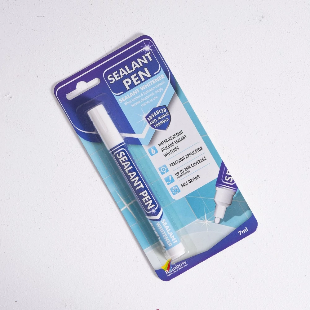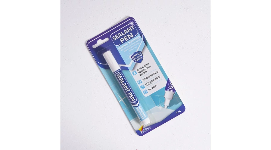Fürdőszobák és konyhák szilikonos tömítésének felújítására. Vizes bázisú, fehér színű, penészgátló adaléka segít megelőzni a későbbi elszíneződést. Tisztítsa le és szárítsa meg a kezelendő felületet. Rázza fel a tollat és pumpálja a festéket a toll hegyébe, majd fesse át vele a szilikont. Ha szükséges, 20 perc száradás után fessen rá új réteget. A teljes száradási idő 12 óra, addig óvja a felületet a víztől.