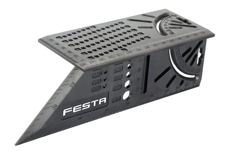 • a szög alakja és geometriája lehetővé teszi pontos mérés a sarkokban, és ideális a ferdeszögek pontos átviteléhez is a feldolgozott anyag szomszédos oldalait