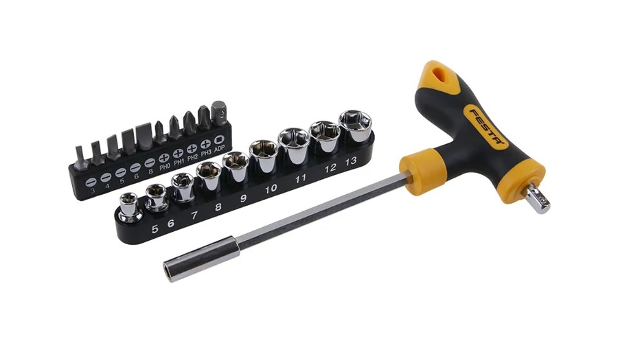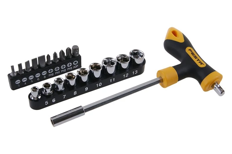 - T csavarhúzó tartozékokkal - bitek 1/4" * 25 mm és fej 1/4", CrV, 20 darabos készlet