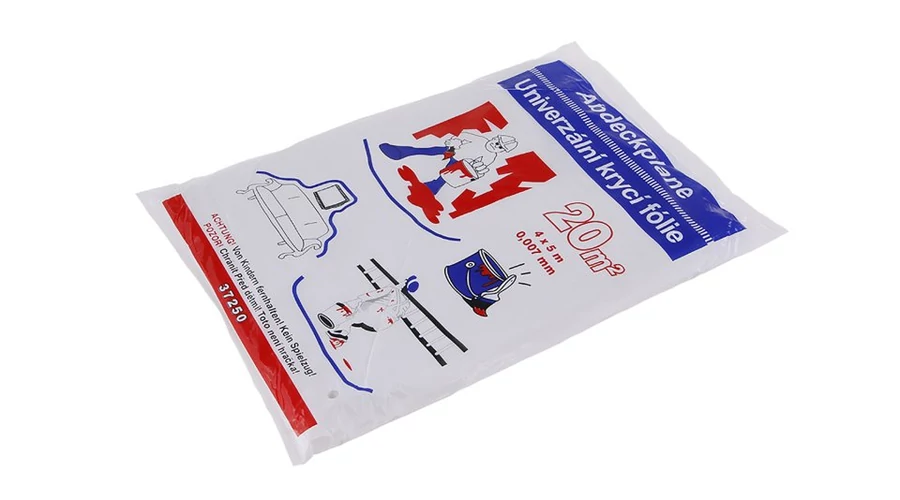 Univerzális fedőfólia, méret: 4 x 5 m - vastagság 0,006 mm, felhasználás: felületek, bútorok szennyeződés elleni védelmére.
