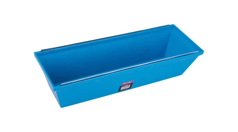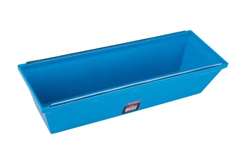 Tálca gipszkartonhoz, anyaga: strapabíró műanyag, fém él a spatula vagy törlőkanál simításánál és tisztításánál, ellenáll a hőmérséklet-változásoknak, oldószereknek
