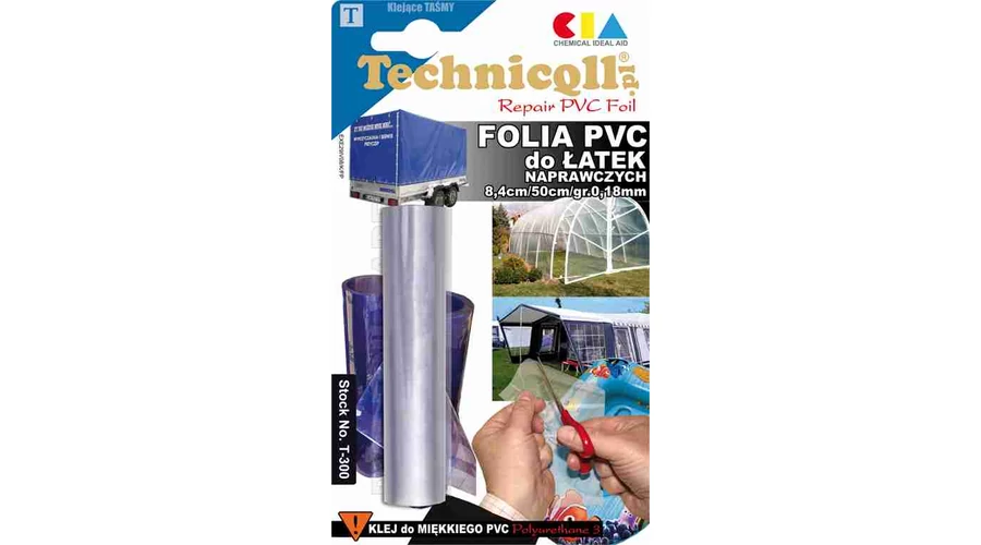 A javító foltokhoz használható PVC fólia speciális, színtelen anyagból készült, amely lehetővé teszi az egyszerű alkalmazást és a sérült felületek tartós, nem látható javítását, pl. sátrak, fóliák, labdák, matracok stb. A fóliából akár kisebb ovális alakú darabokat is kivághatunk. A foltok ragasztásához a puha PVC ragasztó (polyurethane 3) szolgál.