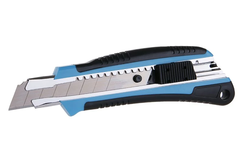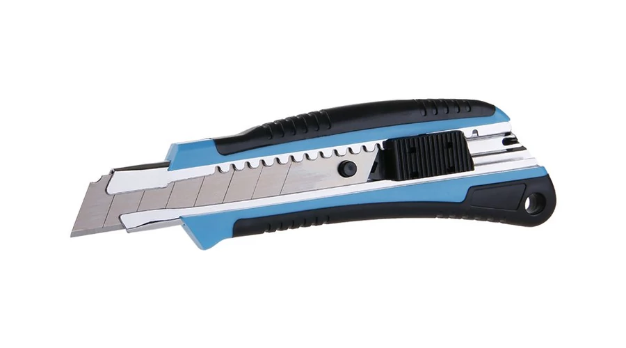 FESTA vágókés 18mm, minőségi anyagok, ergonomikus forma csúszásgátló kezeléssel, fém rúd, automata tolózár, a késbe akár 2 db tartalék penge helyezhető, buborékfólia.