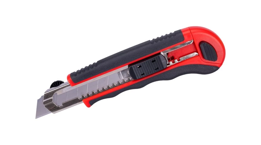 FESTA letörő kés 18mm, minőségi anyagok, fémrúd, automatikus zárás csavaros pengebiztonsággal, 6 db tartalék penge, buborékfólia.