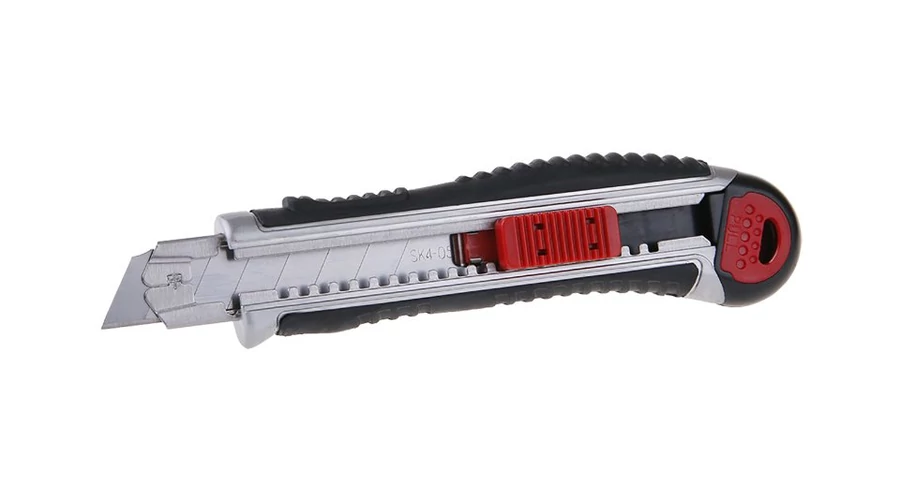Professzionális FESTA 18 mm-es letörő kés, modern és funkcionális kialakítás, biztonság és ergonómia, teljesen fém test gumírozott markolattal, tár a tartalék pengekhez, automatikus pengecsere (ha a tár megtelt), automatikus reteszelés pengenyomó retesszel, csomagolva egy buborékcsomagolás.