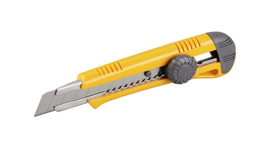 Professzionális bontókés a neves japán KDS gyártótól, precíz megmunkálás és minőségi anyagok, strapabíró csavaros zárral, 18 mm-es pengeszélességgel, Euro lyukkal ellátott buborékcsomagolásban, 2 tartalék pengével. Megfelelő kések LB 10 - 16011, GB 10 - 16012, LB 10 fekete - 16016.