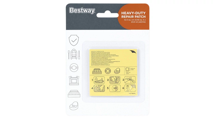 Javítófolt föld feletti medencék fóliájának ragasztásához. Csak száraz fóliára használható.