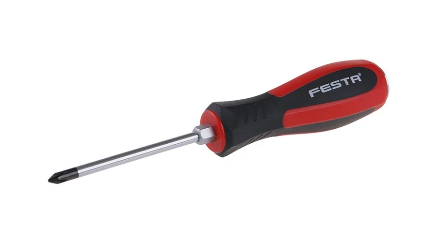 A FESTA csavarhúzó fém szára kiváló minőségű króm-vanádium acélból készült, az edzett hegye mágneses, a csavarhúzó tengelye szorosan kapcsolódik az ütközővéghez, a fogantyú hatszögletű a kulcs használatához, polipropilén kombinációja A markolat gumija és ergonomikus formája jó csúszásgátló tulajdonságokat és jó tartósságot garantál a kenőanyagokkal és vegyszerekkel szemben.