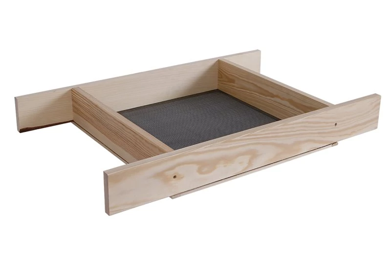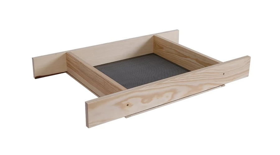 Szita stukkóvakolatok és egyebek szitálásához, fa keret, 2 mm-es lyukbőségű szita.