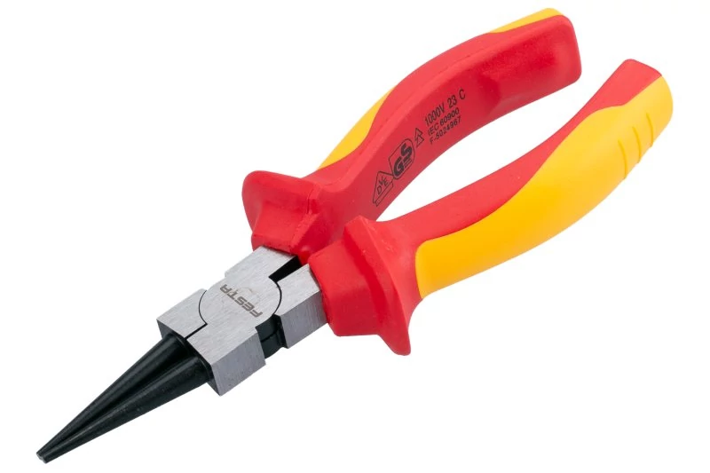 A 160 mm-es FESTA VDE fűzőlyukú fogók elektro VDE 1000 V, IEC/EN 60900-2004 tanúsítvánnyal rendelkeznek, a polipropilén és a gumi kombinációja az ergonomikusan kialakított fogantyúkon kiváló csúszásgátló tulajdonságokat és jó kenőanyagokkal és vegyszerekkel szembeni ellenállást garantál. Megfogópofák különösen kopásálló, króm-vanádium nagy teljesítményű acélból. Súlya 0,233 kg.