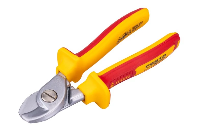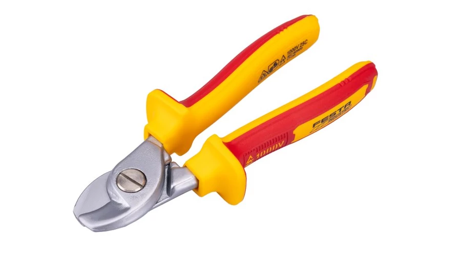A FESTA VDE 160 mm-es kábelvágó fogók elektro VDE 1000 V, IEC/EN 60900-2004 tanúsítvánnyal rendelkeznek, a polipropilén és a gumi kombinációja az ergonomikusan kialakított fogantyúkon kiváló csúszásgátló tulajdonságokat és jó kenőanyagokkal és vegyszerekkel szembeni ellenállást garantál. Megfogópofák különösen kopásálló, króm-vanádium nagy teljesítményű acélból. Súlya 0,350 kg.