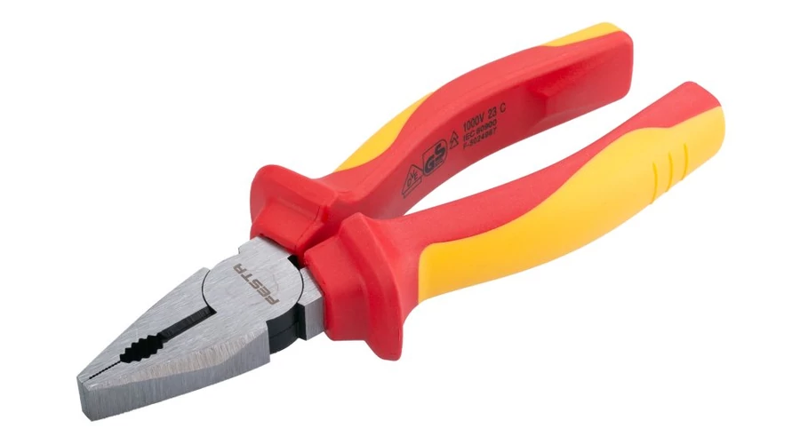 A kombinált 160 mm-es FESTA VDE fogók elektro VDE 1000 V, IEC/EN 60900-2004 tanúsítvánnyal rendelkeznek, a polipropilén és a gumi kombinációja az ergonomikusan kialakított nyélen kiváló csúszásgátló tulajdonságokat és jó kenőanyagokkal és vegyszerekkel szembeni ellenállást garantál. Megfogópofák különösen kopásálló, króm-vanádium nagy teljesítményű acélból. Súlya 0,283 kg.