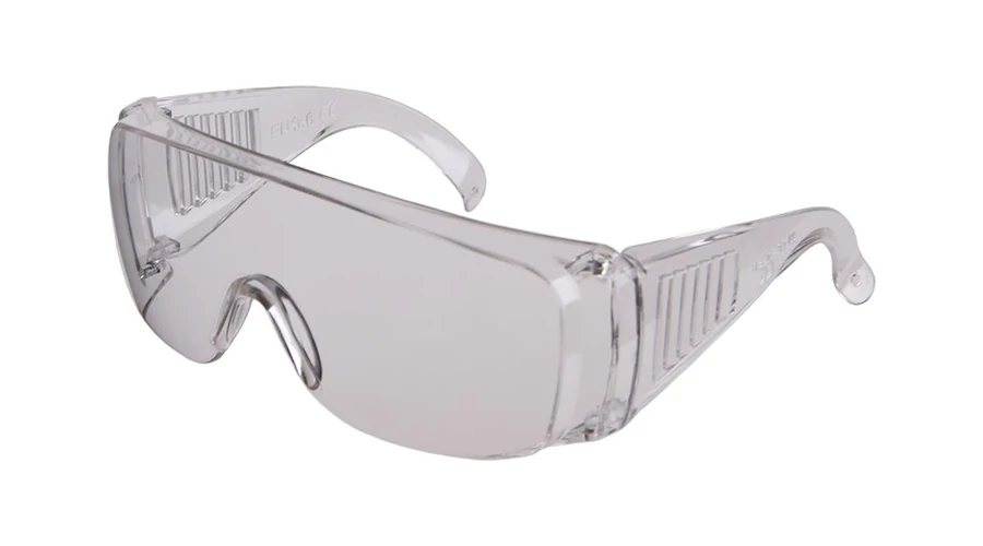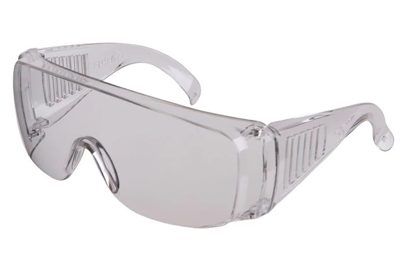 Átlátszó biztonsági szemüveg polikarbonát lencsével és oldalakkal, CE EN 166.