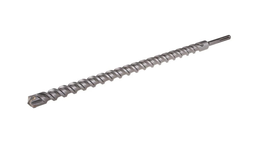 Kiváló minőségű négyélű fúrófej precízen pozicionált keményfém lemezekkel (nagy keménységű), 1000°C feletti hőmérsékleten forrasztva - a fúrás közbeni magas hőmérséklet jobb tűréséhez, használható: márvány, kő, kerámia, tégla ütvefúrásához , beton, stb., csavarforma ideális formája a fúrt anyag gyors eltávolításához, rögzítés - SDS MAX, méretek feltüntetve a termék megnevezésében.