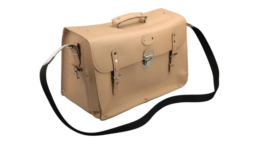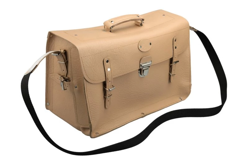 Természetes bőrből készült villanyszerelő összecsukható táska. Nyíló elején zsebekkel a szerszámok rendezett tárolására és egy nagy zsebbel a rajzok számára. Alsó, oldalsó és hátsó zseb megerősítése további szerszámok számára. Ideális lakatosoknak, beállítóknak stb. A táska speciális Amann PES cérnával van varrva, a cérna teherbírása 12 kiló, a varratok a szabad helyeken még szegecselve vannak. Jellemzők: csuklós táska eleje, fogantyú, vállpánt, acél hátsó megerősítés. Belső felépítés: 1 lapos zseb az iratok számára, válaszfal a fő tárolóban, rekeszek csavarhúzóknak és kis szerszámoknak két sorban. Erősítések: alul, hátul, táska oldalán, belső zsebben. Fő anyaga: természetes marhabőr.