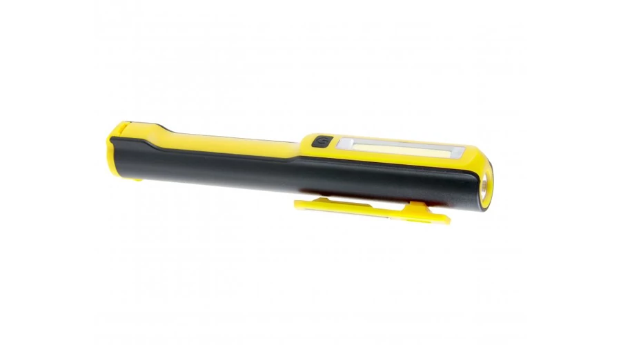 LED zseblámpa, 200mm, 40 lumen elülső lámpával és 120 lumen oldalsó lámpával, rögzítési mágnesekkel, forgatható klipszel. 3xAAA.